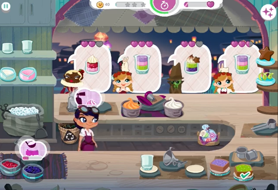 Bakery Blitz is a gorgeous saga time management cooking game where you play Sugar, a plucky young chef who wants to bring sweets to the world. The following is a screenshot of the fast-paced gameplay where you have to make the sweets the customers demand!